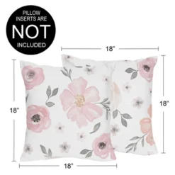Sweet Jojo Designs Girl Decorative Throw Pillow Covers 18in. (Pillow Inserts Not Included) Watercolor Floral Pink Grey And White 2pc