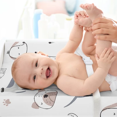 Cartoon Puppy Collection Sweet Jojo Designs baby changing pad sheet covers is the perfect nursery essential. Use a changing mat cover sheet for extra protection and comfort for newborns and toddlers during outfit changes or changing diapers. And it’s always a good idea to buy extras so you can easily change it out when it’s time to wash. Sweet Jojo Designs offers coordinating crib bedding sets, receiving security blankets, nursing pillow covers and other baby room decor accessories (These items not included). This brushed microfiber diaper pad cover sheet features an exclusive design of a grey taupe blue modern watercolor puppy bulldog wiener doggy pet puppies dog and paw prints.