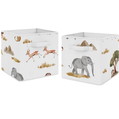Jungle Collection fabric storage bins by Sweet Jojo Designs offer a stylish yet functional storage solution. What a perfect way to transform your organizational system in any room. This set of two foldable storage cubes can be used in most standard cubby-hole shelving furniture in a classroom, as stand-alone bins in a playroom, or collapsed to save space when not in use in your little one’s bedroom. Please note: actual print may vary on bins featuring printed fabric. Sweet Jojo Designs creates various coordinating room accessories and decor for all of their children’s bedding and nursery bedding set collections (These items not included). Features a multicolor watercolor jungle animals print