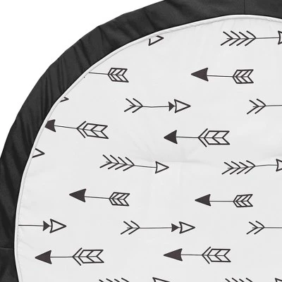 Fox Black and White Collection Play Mats by Sweet Jojo Designs make tummy time and child development stylish and fun. Made with soft fabrics and fluffy fill, this multi-functional mat is small enough to take on the go. These adorable playmats will transform any room into the perfect play space. Great for vacations, playdates, beach outings, and everyday use at home. Always be aware of baby’s surroundings and keep an eye on baby while in use. Not intended for sleep. Sweet Jojo Designs creates various coordinating room accessories and decor for all of their children’s bedding and nursery bedding set collections (These items not included). Playmat is designed using a black and white arrow print and finished with white piping and a black border – Brushed Microfiber