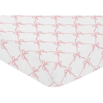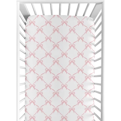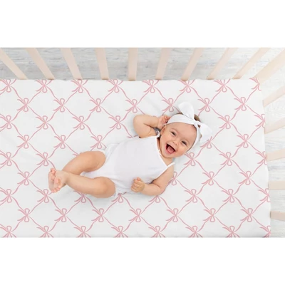 Ballerina and Ballet Bows Collection Sweet Jojo Designs crib sheets are the ideal combination of unique designs, exclusive patterns, and classic colors to bring a stylish upgrade to your baby nursery or toddler bedroom and are sure to be your favorite newborn essential. This crib mattress sheet is designer curated and made with soft fabrics to complete your dream infant nursery. Our cribsheets feature a fully elastic bottom for a secure fit on most standard crib size and toddler beds. Our infant and toddler fitted crib sheets are lightweight and durable making the perfect sleeping environment for your bundle of joy. Don’t forget to purchase extras! It’s always good to have multiple baby bedding sheets to use in between laundry wash days and easily change in case of unexpected, late night messes. Or bring extra sheets from home when on vacation or traveling to grandparents house to give your tot a familiar place to rest their head no matter where you are. Pair your crib baby sheet with your favorite Sweet Jojo Designs collections and coordinate with our crib bedding sets, swaddle blankets, playmats and baby room decor accessories. A crib mattress sheet is essential for your baby’s comfort and ensuring a soft, breathable surface for restful sleep.This newborn crib sheet fits snugly over the mattress, providing a secure and smooth fit that reduces shifting and bunching. Adding a crib mattress sheet to your gift registry is a thoughtful way to prepare for your baby’s arrival, as it’s a practical and useful item every parent will need. And remember, you can never have too many baby sheets! Add a baby cribsheet to your list of must haves for your little one! This soft crib sheet is stretchy and comfortable to give your infant or toddler the perfect setting for a good night’s rest. It’s thoughtfully designed with elastic sewn around the entire bottom edge of the sheet for a secure fit on most standard sized cribs and toddler beds. Use one crib sheet in your newborns bed and have spares nearby to swap in between washes and to be prepared if an accident happens in the crib. The interior design of a nursery can be planned entirely around a single focal point like the crib sheet. It makes the perfect gift with one of Sweet Jojo Designs coordinating crib bed sets, changing pad covers, nursing pillow covers, nursery room decoration accessories and window treatments. Include one in your baby shower gift basket, gender reveal presents or add to your baby gift registry to ensure you have all you need to complete your Sweet Jojo Designs baby bed room look. This brushed microfiber crib sheet features an exclusive design of a blush pink and white bows print made to match the Ballerina Ballet Dancer Princess Collection