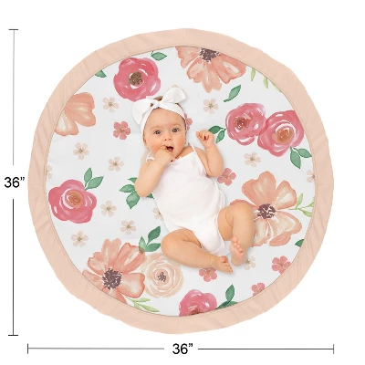 Watercolor Floral Peach and Green Play Mats by Sweet Jojo Designs make tummy time and child development stylish and fun. Made with soft fabrics and fluffy fill, this multi-functional mat is small enough to take on the go. These adorable playmats will transform any room into the perfect play space. Great for vacations, playdates, beach outings, and everyday use at home. Always be aware of baby’s surroundings and keep an eye on baby while in use. Not intended for sleep. Sweet Jojo Designs creates various coordinating room accessories and decor for all of their children’s bedding and nursery bedding set collections ( These items not included ). Playmat is designed using a peach and green watercolor floral print and finished with peach piping and border – Brushed Microfiber