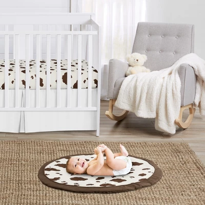Western Cowgirl Collection Play Mats by Sweet Jojo Designs make tummy time and child development stylish and fun. Made with soft fabrics and fluffy fill, this multi-functional mat is small enough to take on the go. These adorable playmats will transform any room into the perfect play space. Great for vacations, playdates, beach outings, and everyday use at home. Always be aware of baby’s surroundings and keep an eye on baby while in use. Not intended for sleep. Sweet Jojo Designs creates various coordinating room accessories and decor for all of their children’s bedding and nursery bedding set collections (These items not included). Playmat is designed using a chocolate brown, beige, cream and off white vintage country animal cow print and finished with solid chocolate brown piping and border – Brushed Microfiber
