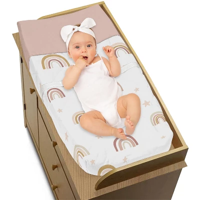 Boho Rainbow Collection Sweet Jojo Designs baby changing pad covers is the perfect nursery essential – it is created with soft fabrics in exclusive patterns and colors and finished with an embellished plush quilted diamond design to hold lining in place. Use a changing mat cover for extra protection and comfort for newborns and toddlers during outfit changes or changing diapers. And it’s always a good idea to buy extras so you can easily change it out when it’s time to wash. Sweet Jojo Designs offers coordinating crib bedding sets, receiving security blankets, nursing pillow covers and other baby room decor accessories (These items not included). This changing pad features a pink and yellow boho watercolor rainbow print.