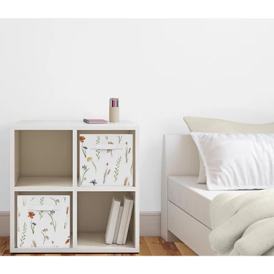 Watercolor Floral Garden Sage Green Collection Sweet Jojo Designs storage bins are the perfect combination of decor and storage to bring a stylish update to your baby nursery, bed room, classroom, closet, kitchen, livingroom, college dorm, den, family room, foyer, gaming room, guest room, home gym, home office, apartment, attic, basement, bathroom, home theater, kids bed room, mud room, pantry, play room or garage. With the variety of designs available, any room for baby, children, teens, college students, or adults will be easily upgraded with these simple storage solutions. These collapsible fabric storage cubes feature exclusive patterns and prints to create a convenient and chic set of decorative bins to use for any occasion or age. Declutter your home with organizer bins to help meet your organization needs for all common household items such as small plush toys, stuffed animals, baby clothing, shoes, wash cloths, books, kids clothes, household clutter and more. Use this set of two foldable storage cubes in most standard cubby-hole shelving furniture or as stand-alone bins. Made from a flexible and foldable material, simply fold flat and store for easy space saving storage when not in use. Pair your set of organizing bins with your favorite Sweet Jojo Designs collections and coordinate with our crib bedding sets, twin or queen bed sets, window valances, and room decor accessories to give you a complete look for any room in your home. Use storage bins with handles to organize and store all your household clutter while also serving as decorative room decor. These storage baskets for organizing can be placed in your nursery, closet, college dorm, den, family room, foyer, apartment, attic, basement, bathroom, bedroom, classroom, gaming room, guest room, home gym, home office, home theater, kids bed room, kitchen, living room, mud room, pantry, play room or garage. Kid friendly storage solutions are perfect for holding your children’s items, newborn essentials, or general home goods such as blankets, pillows, Montessori educational supplies, toys, sheets, books, linens, towels, clothing, dog toys and more. Makes the perfect gift to coordinate with Sweet Jojo Designs nursery bedding, crib sheets, changing pad covers, nursing pillow covers, duvets, sheet sets, window treatments, wall decor, and home decor accessories. It can also double as a functional decorative alternative to paper boxes, gift bags or wrapping paper by holding your birthday presents, baby shower gifts and gender reveal presents within the decorative bins. These brushed microfiber fabric storage bins feature an exclusive design of a sage green, beige, blue, rust orange and taupe boho floral garden flower nature watercolor bohemian farmhouse vintage shabby chic wildflower print with white cotton fabric handle.