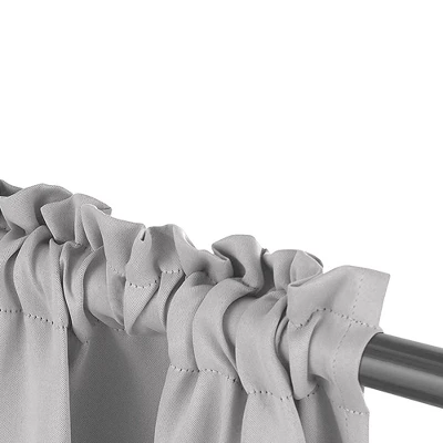 - Rod Pocket style valance. Fits standard rods up to .75 inches in diameter.